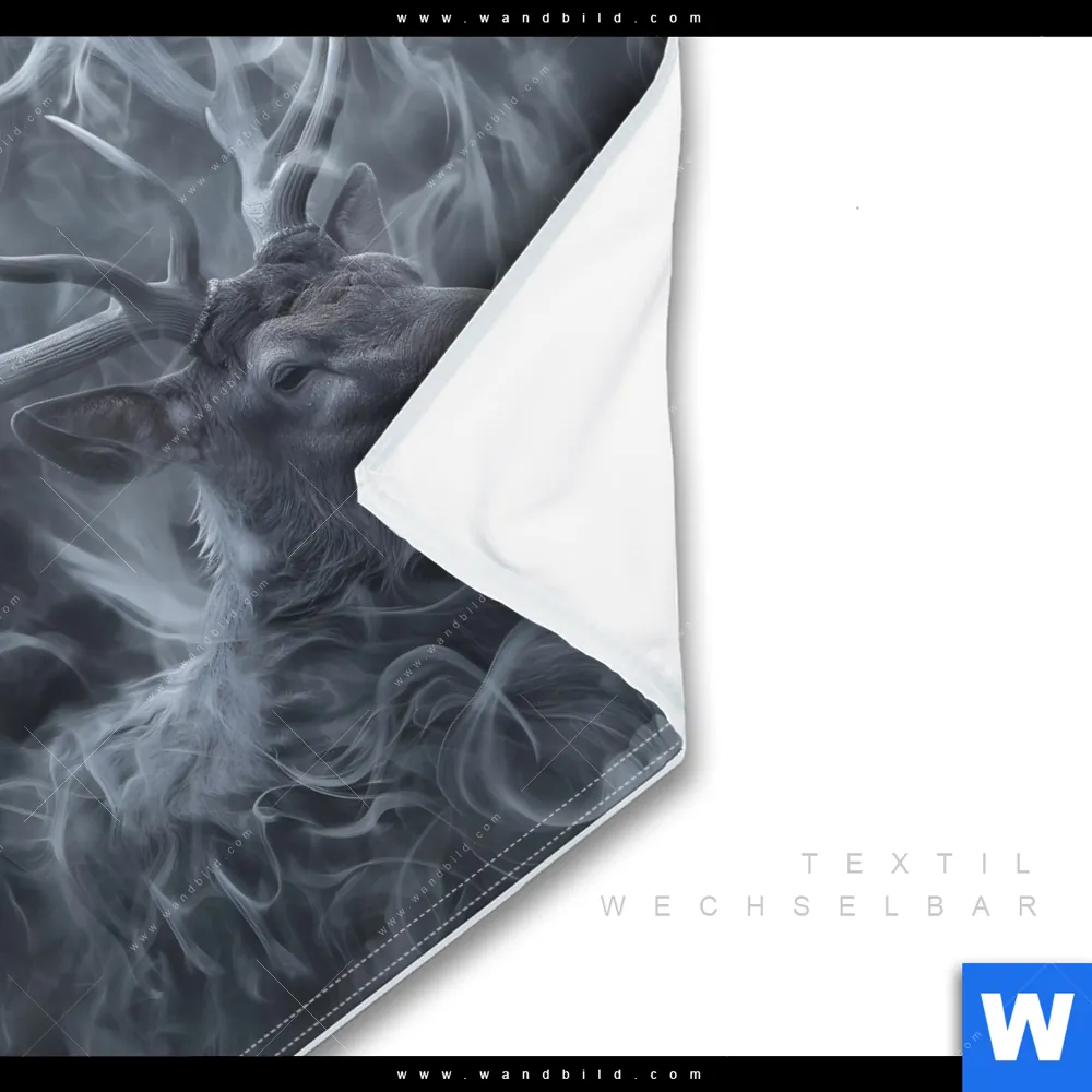 Wechselmotiv Textil | Mystischer Hirsch im Nebel | Quadrat