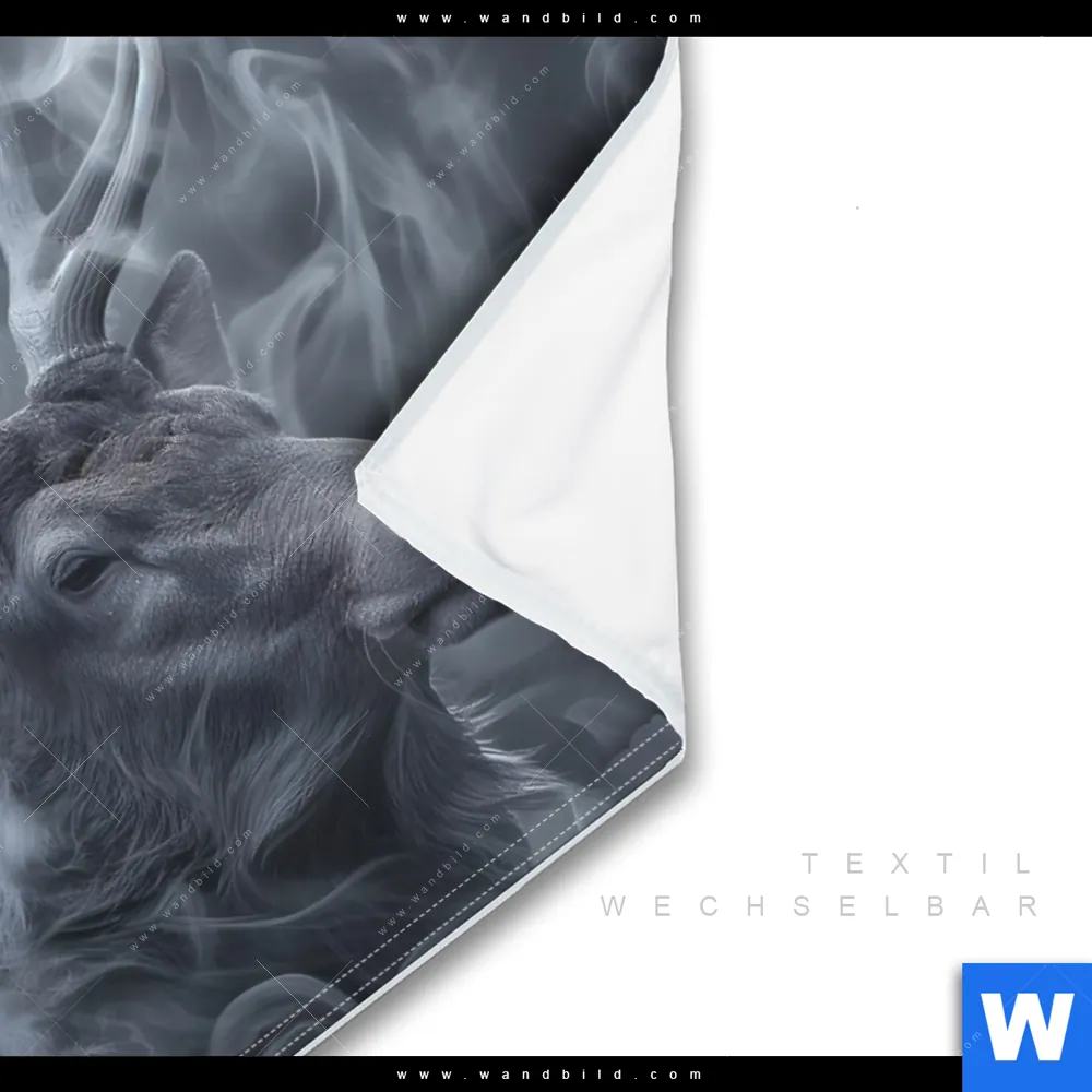 Wechselmotiv Textil | Mystischer Hirsch im Nebel | Querformat