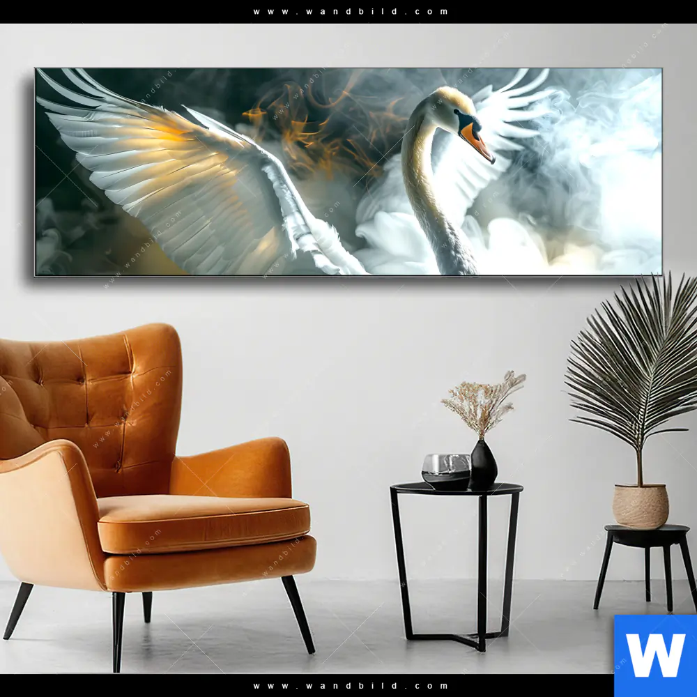Wechselmotiv Textil | Mystischer Schwan im Nebel | Panorama