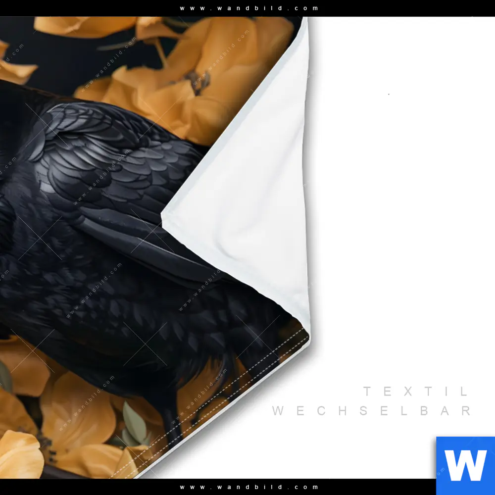 Wechselmotiv Textil | Naturbild - Rabe & Blüten | Querformat