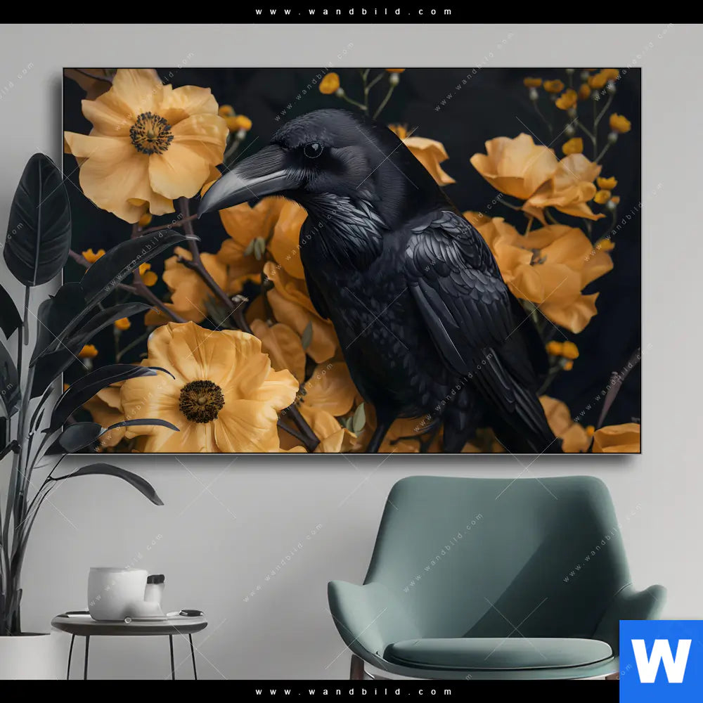 Wechselmotiv | Naturbild - Rabe & Blüten | Querformat