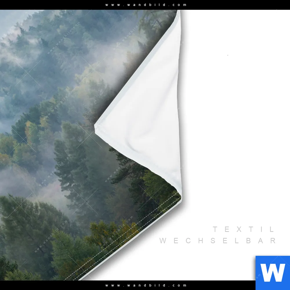 Wechselmotiv Textil | Nebel im Wald | Quadrat