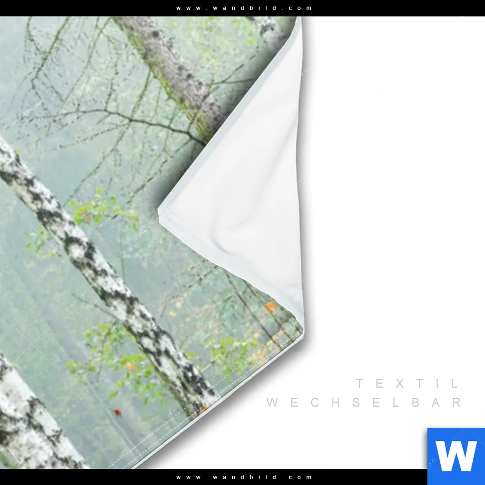 Wechselmotiv Textil | Nebliger Birkenwald | Panorama