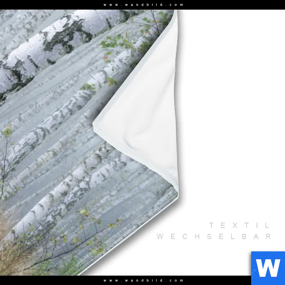 Wechselmotiv Textil | Nebliger Morgen im Birkenwald | Hochformat