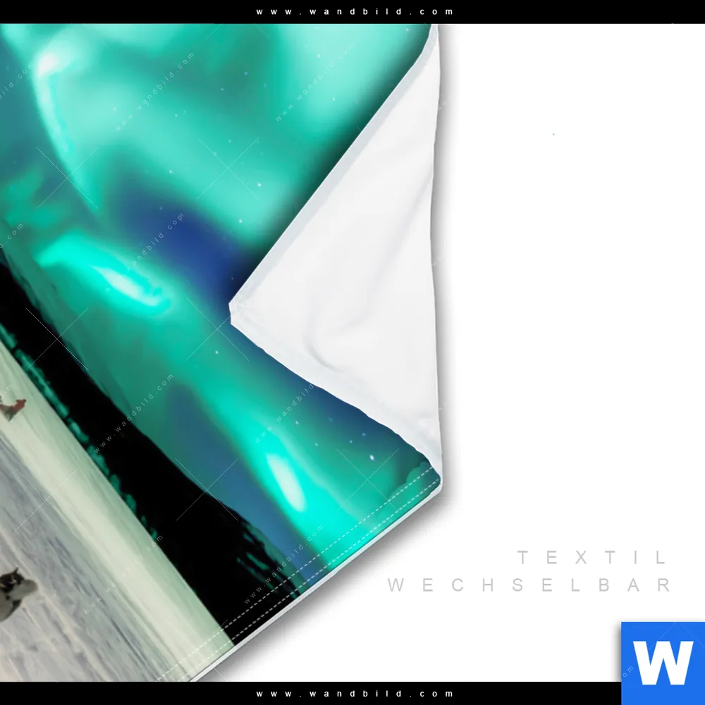 Wechselmotiv Textil | Nordlichter und Schlittenhunde | Hochformat