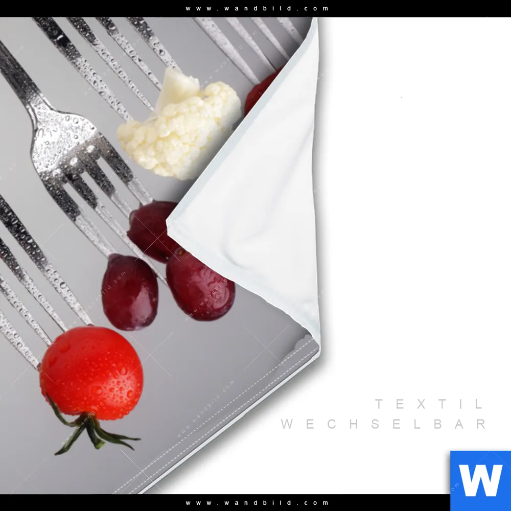 Wechselmotiv Textil | Obst & Gemüse auf Gabeln | Hochformat