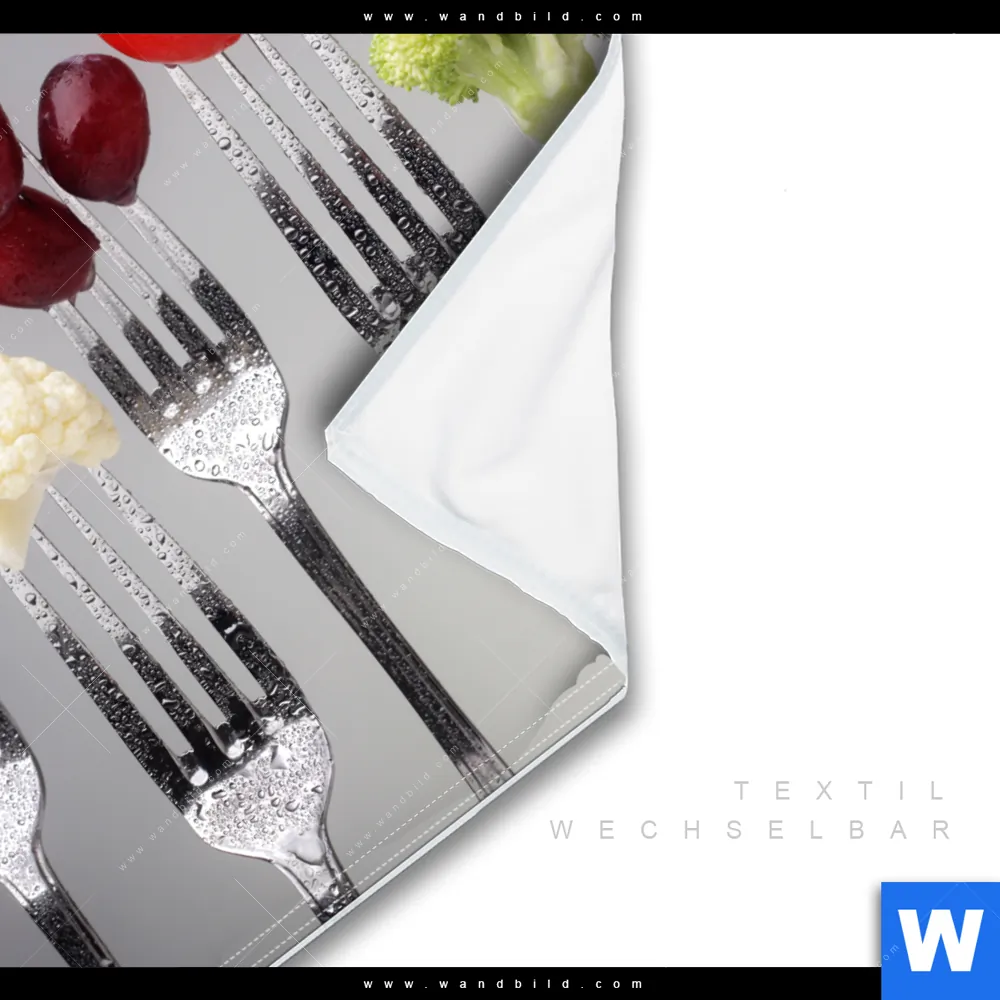 Wechselmotiv Textil | Obst & Gemüse auf Gabeln | Quadrat