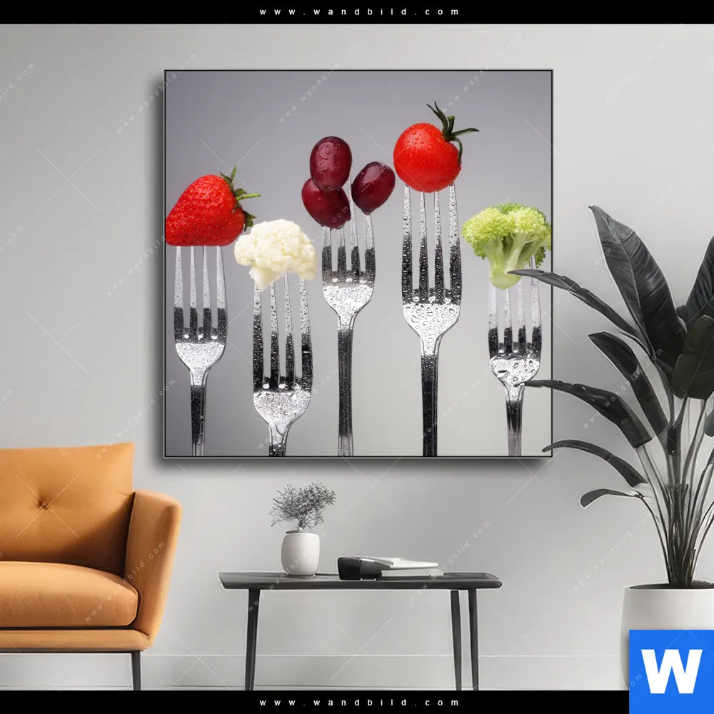 Wechselmotiv | Obst & Gemüse auf Gabeln | Quadrat