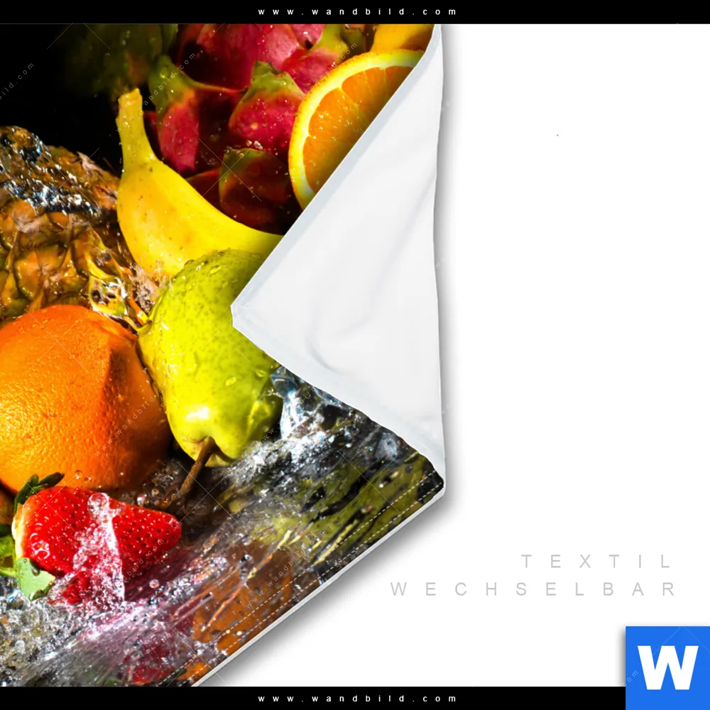 Wechselmotiv Textil | Obst-in spritzendem Wasser | Quadrat