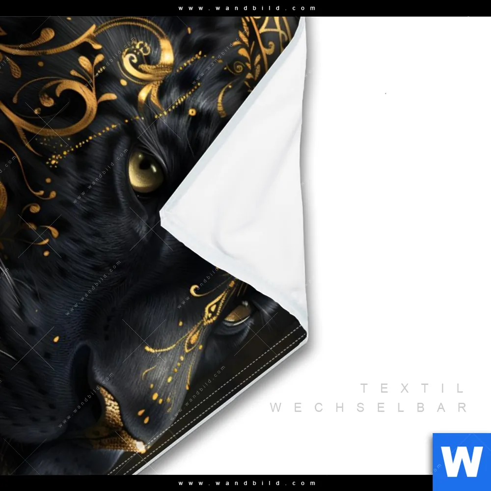 Wechselmotiv Textil | Panther mit goldenen Ornamenten | Hochformat