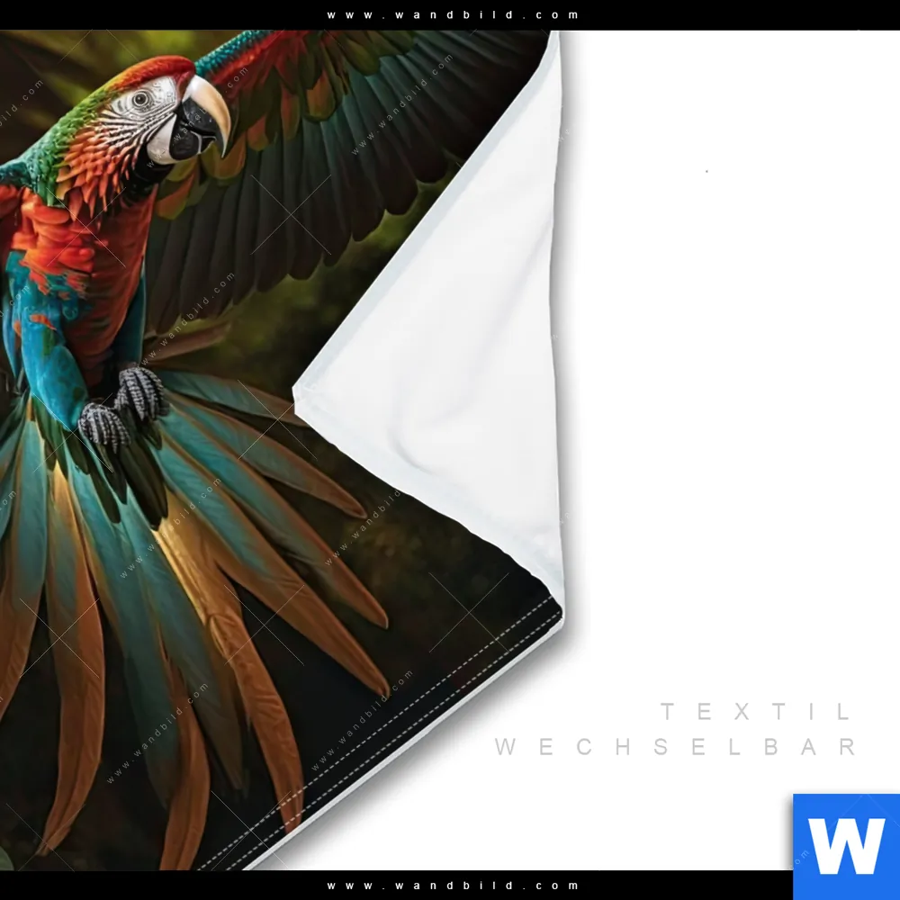 Wechselmotiv Textil | Papagei im Flug | Quadrat