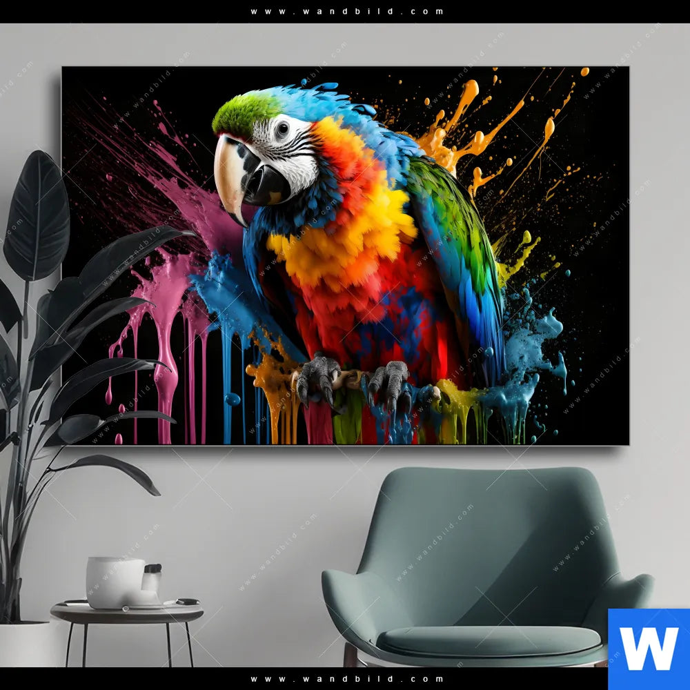 Wechselmotiv | Papagei mit bunten Farbspritzern | Querformat
