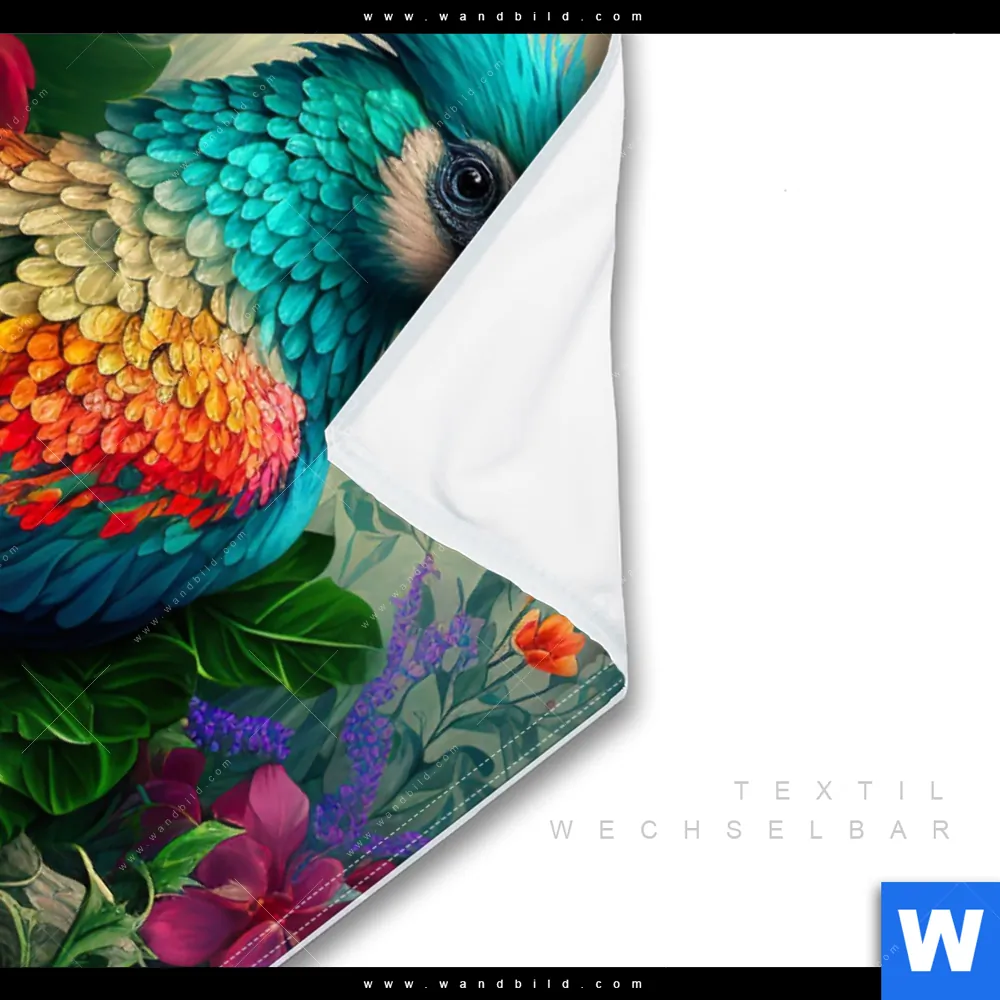 Wechselmotiv Textil | Papagei und tropischer Hibiskus | Hochformat