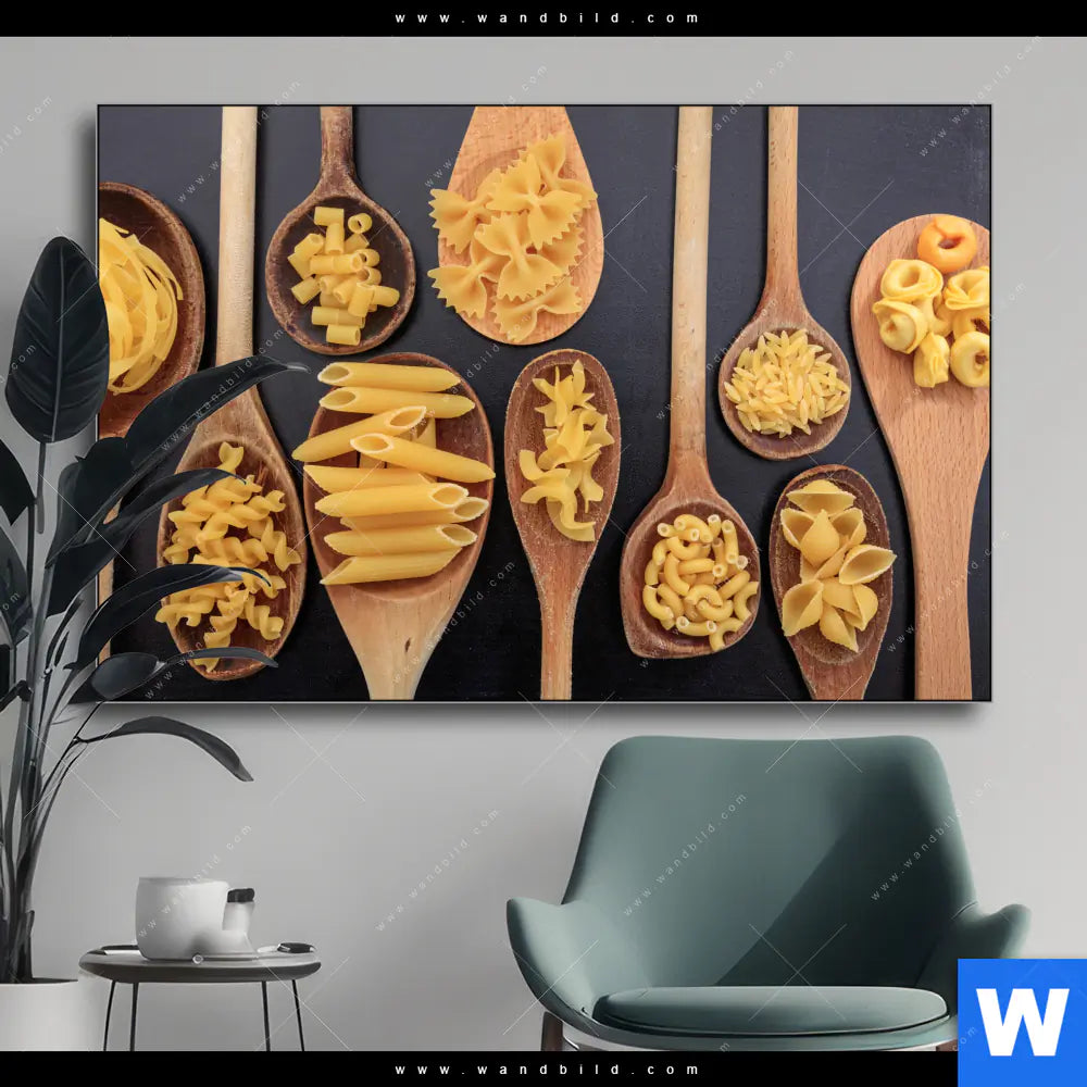 Wechselmotiv Textil | Pasta auf Löffeln | Querformat