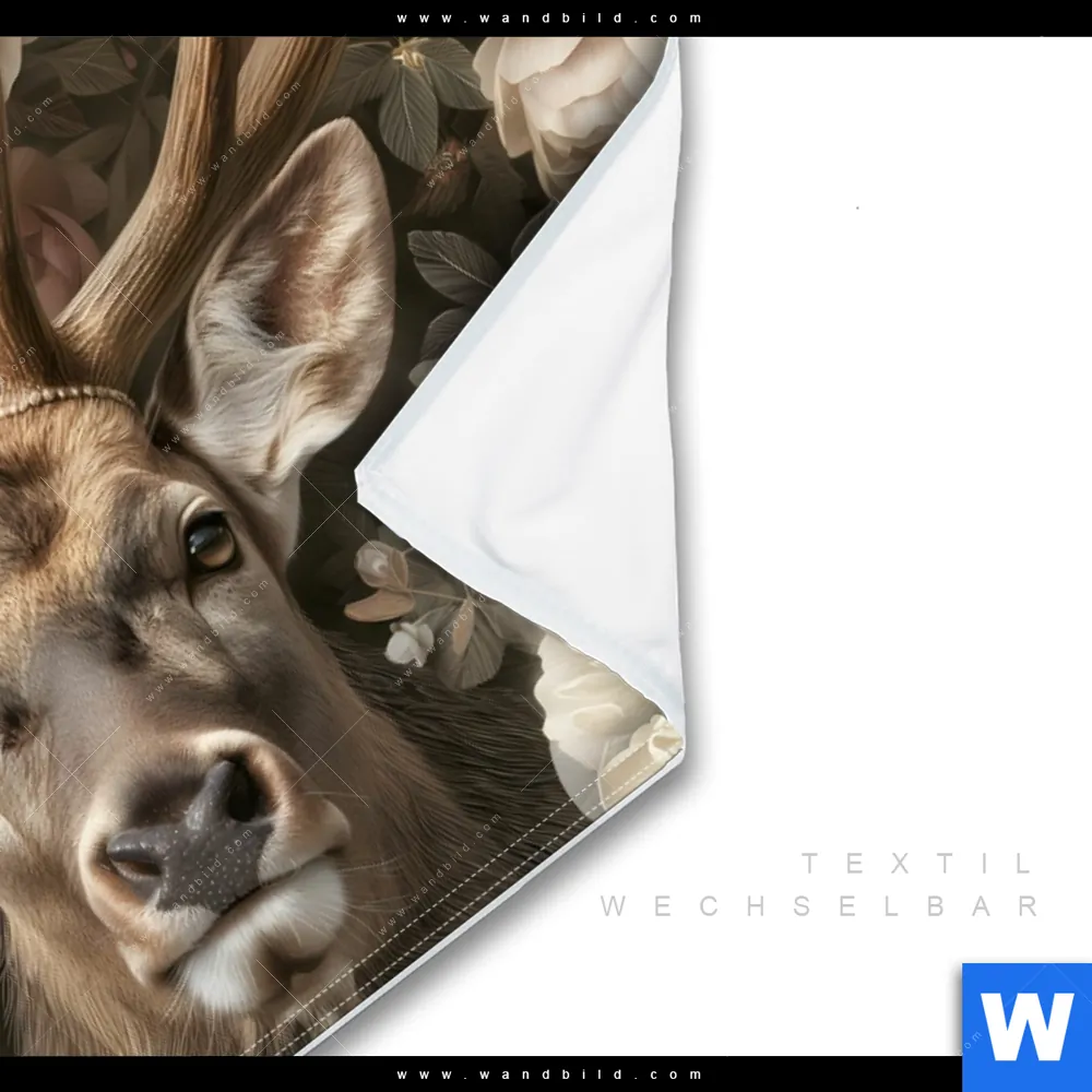 Wechselmotiv Textil | Romantischer Hirsch mit Blumen | Querformat