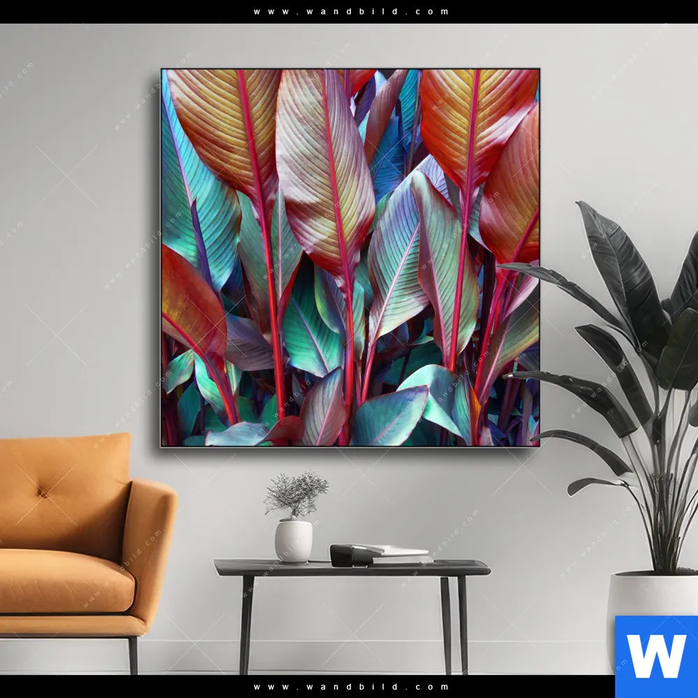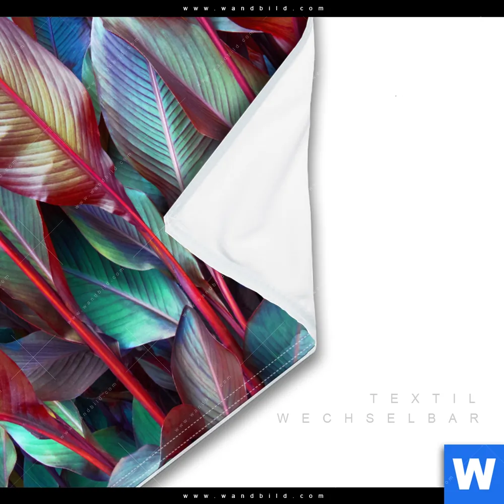 Wechselmotiv Textil | Rote und smaragdgrüne Blätter | Quadrat