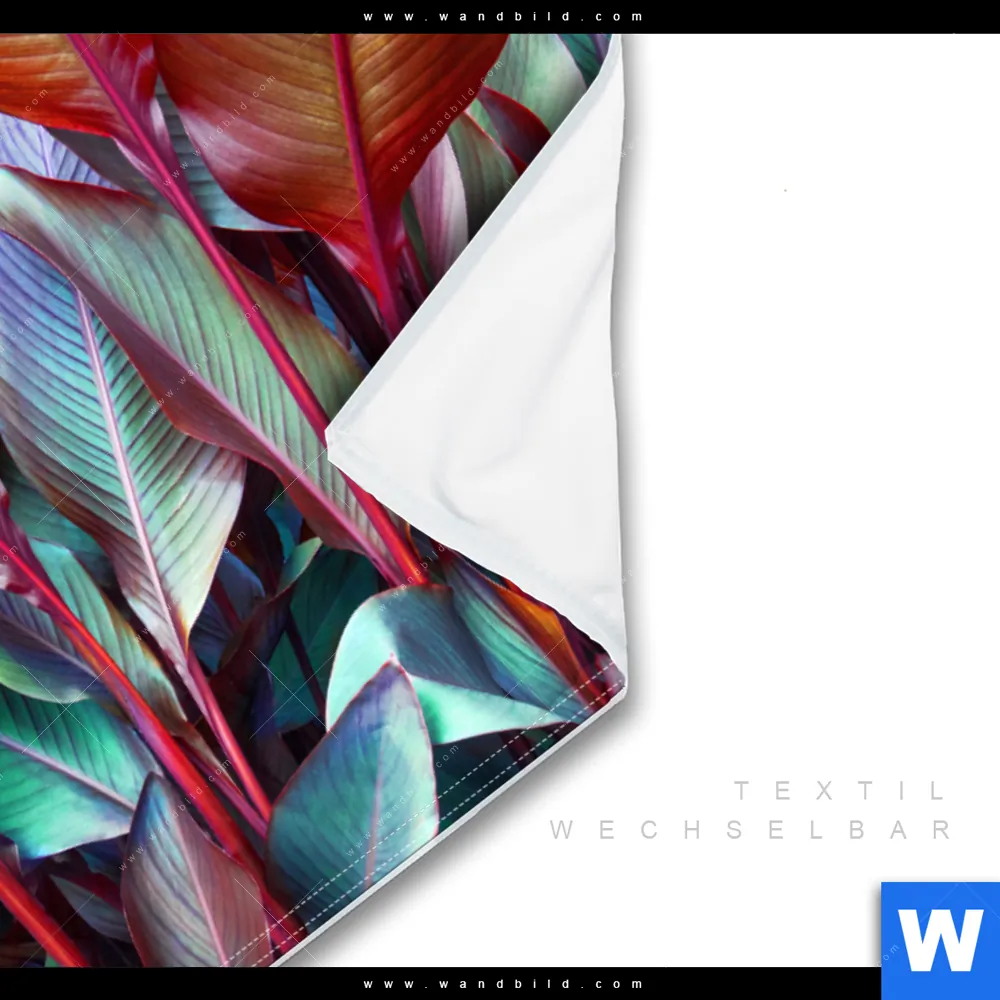 Wechselmotiv Textil | Rote und smaragdgrüne Blätter | Querformat