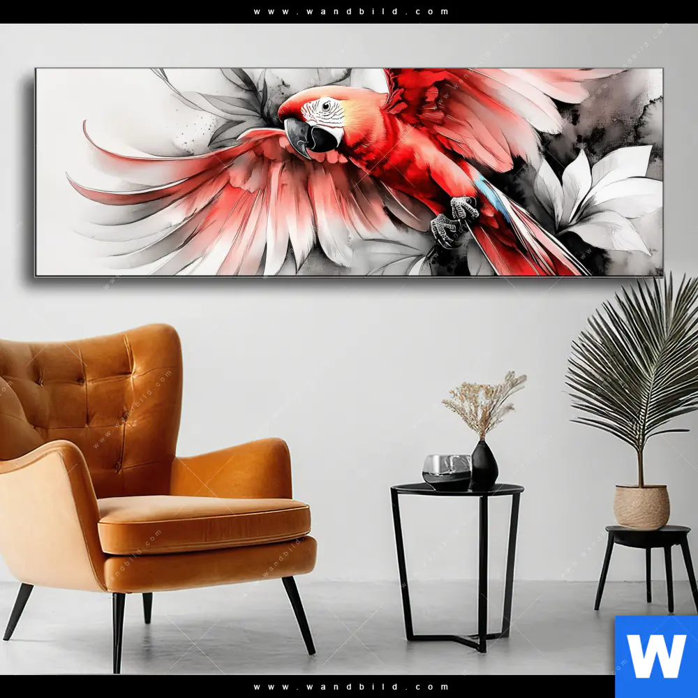 Wechselmotiv | Roter Papagei im Flug | Panorama