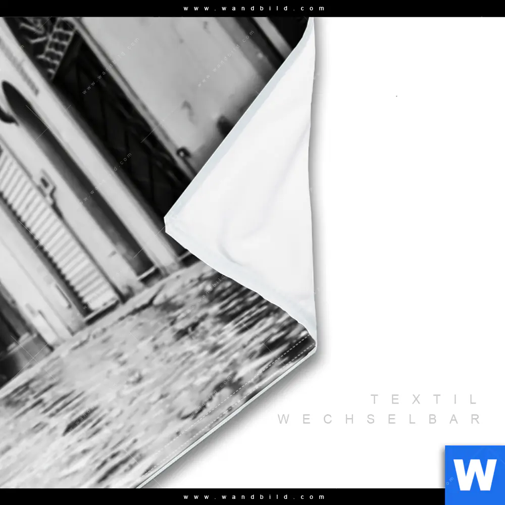 Wechselmotiv Textil | Rotes Fahrrad in Gasse | Panorama