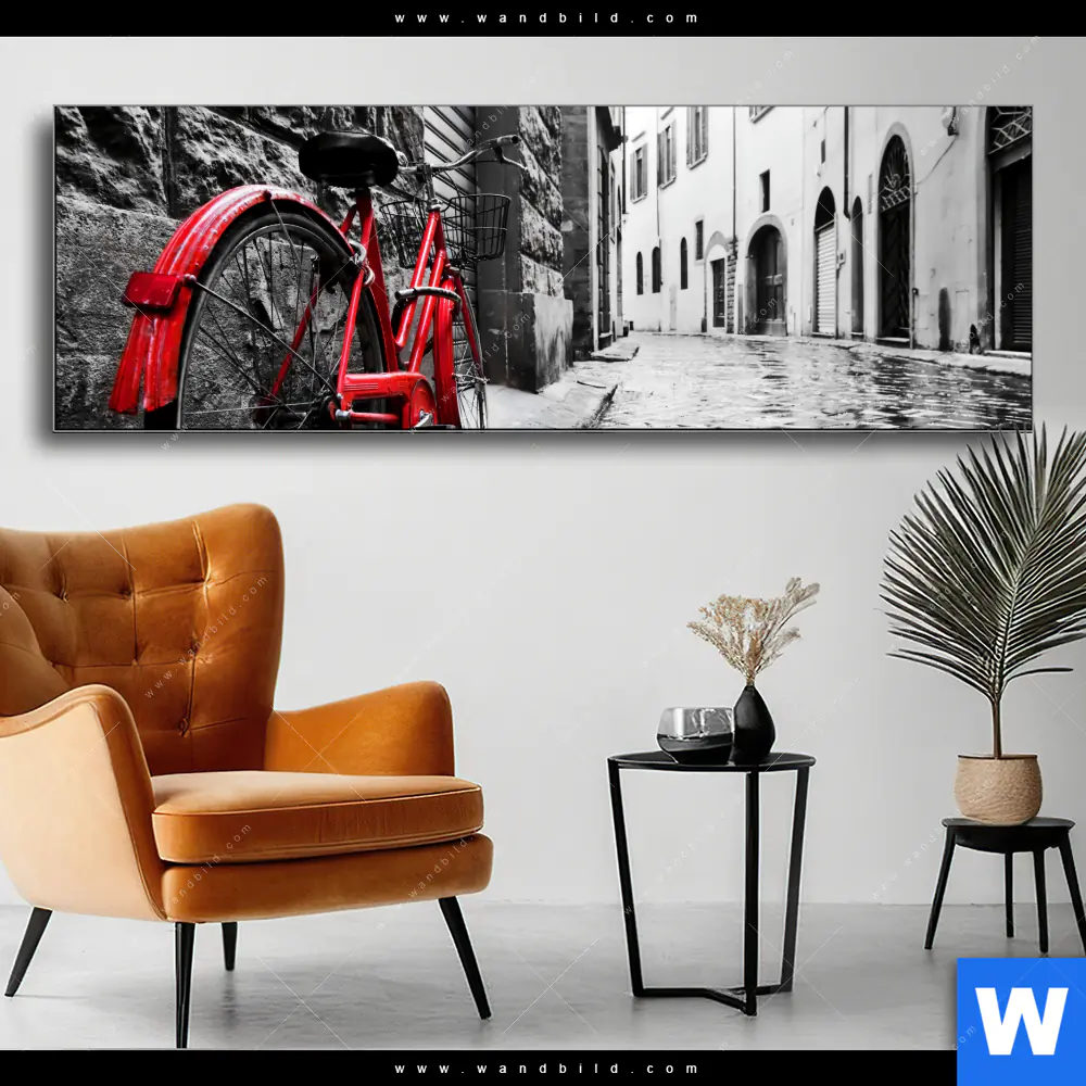 Wechselmotiv | Rotes Fahrrad in Gasse | Panorama
