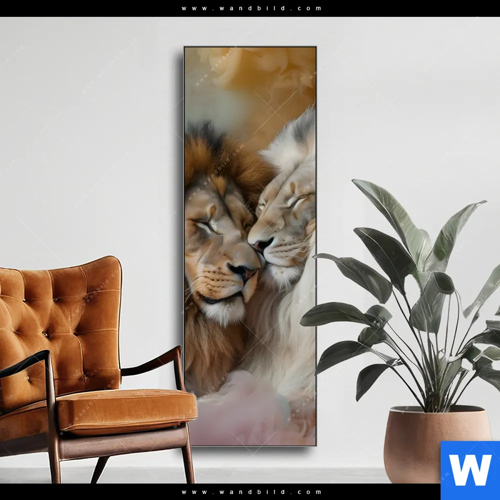 Wechselmotiv Textil | Sanfte Löwenmomente in buntem Nebel | Schmal