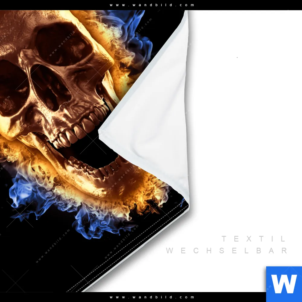 Wechselmotiv Textil | Schädel in Flammen | Quadrat