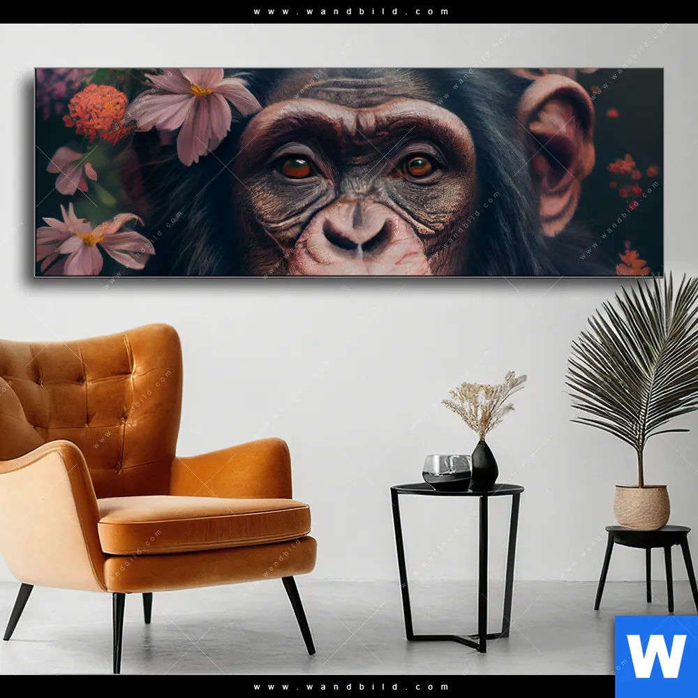 Wechselmotiv | Schimpanse zwischen Blumen | Panorama