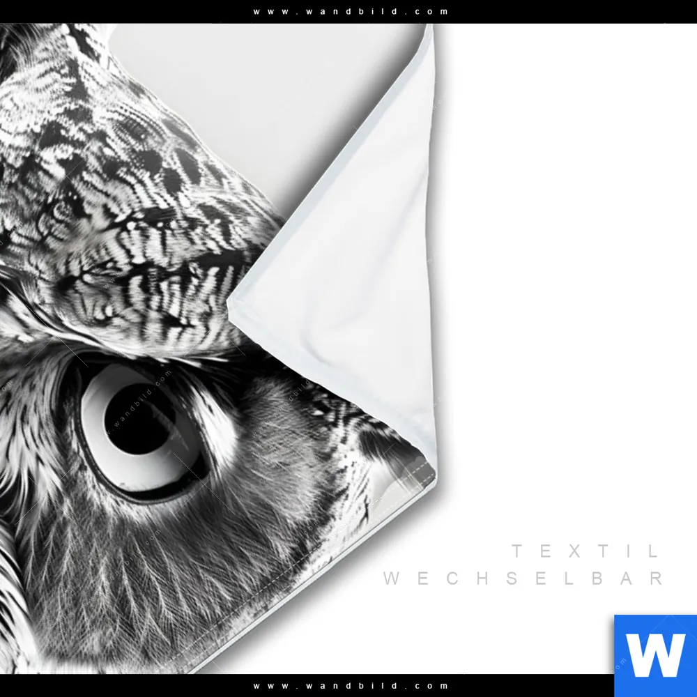 Wechselmotiv Textil | Schwarz-Weiß Eulenportrait | Hochformat