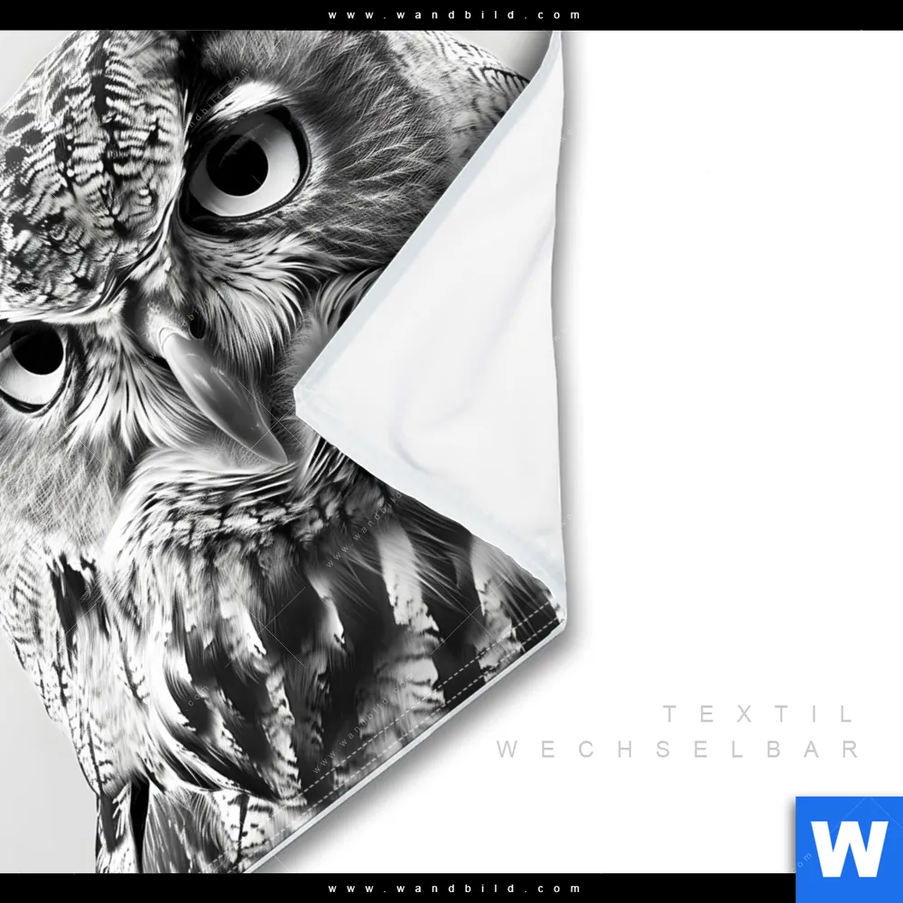 Wechselmotiv Textil | Schwarz-Weiß Eulenportrait | Quadrat