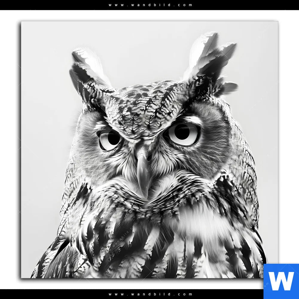 Wechselmotiv | Schwarz-Weiß Eulenportrait | Quadrat