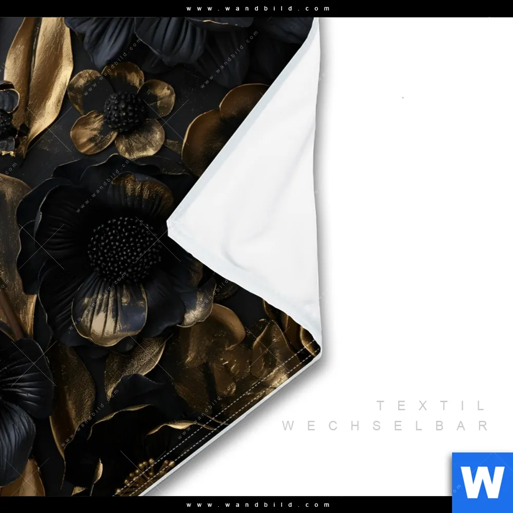 Wechselmotiv Textil | Schwarze und goldene Blüten | Quadrat