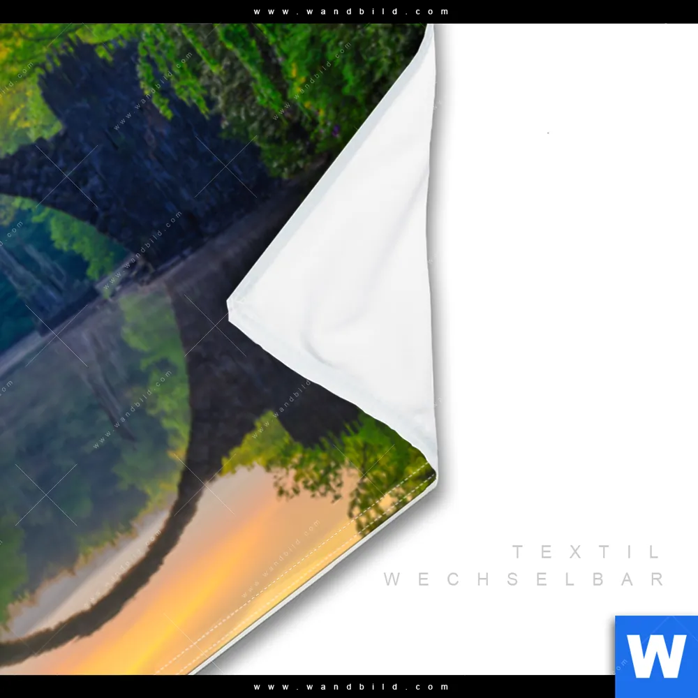 Wechselmotiv Textil | See mit alter Brücke aus Stein | Panorama