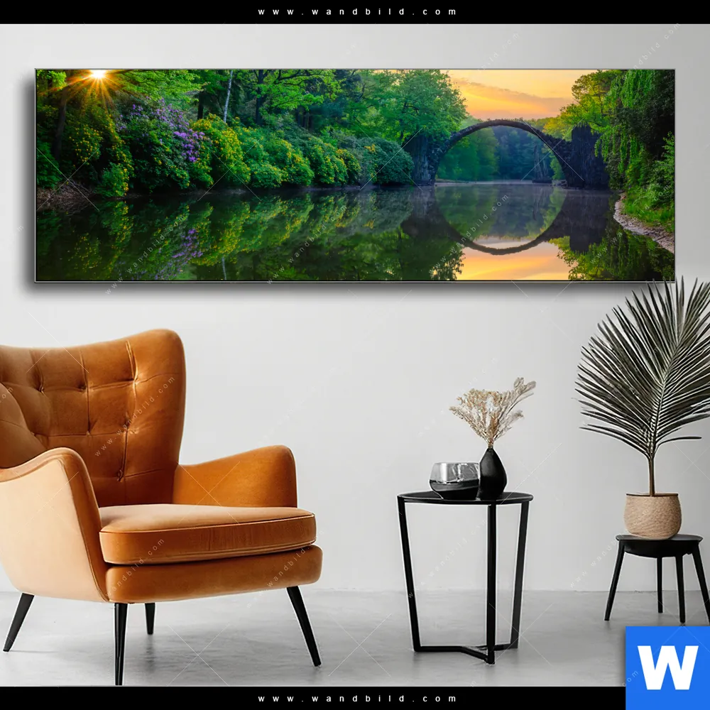 Wechselmotiv | See mit alter Brücke aus Stein | Panorama