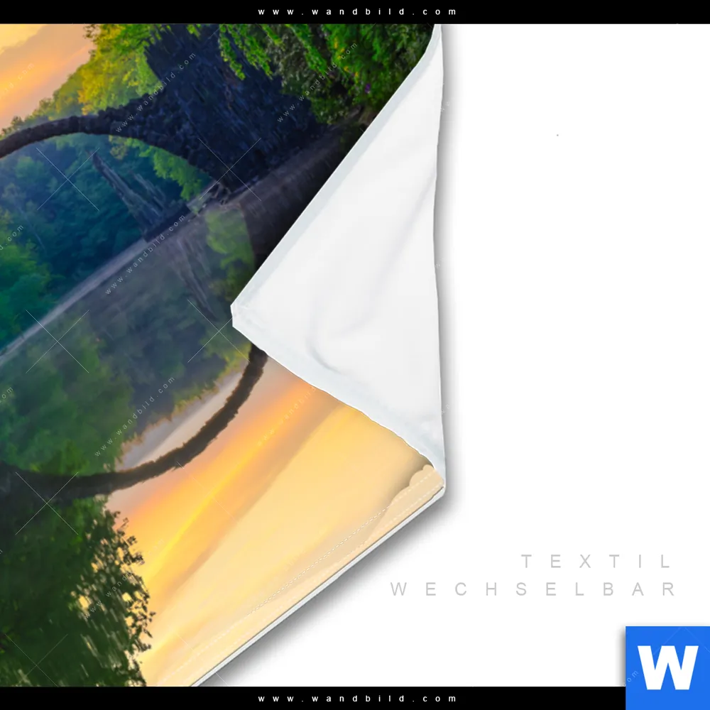 Wechselmotiv Textil | See mit alter Brücke aus Stein | Querformat