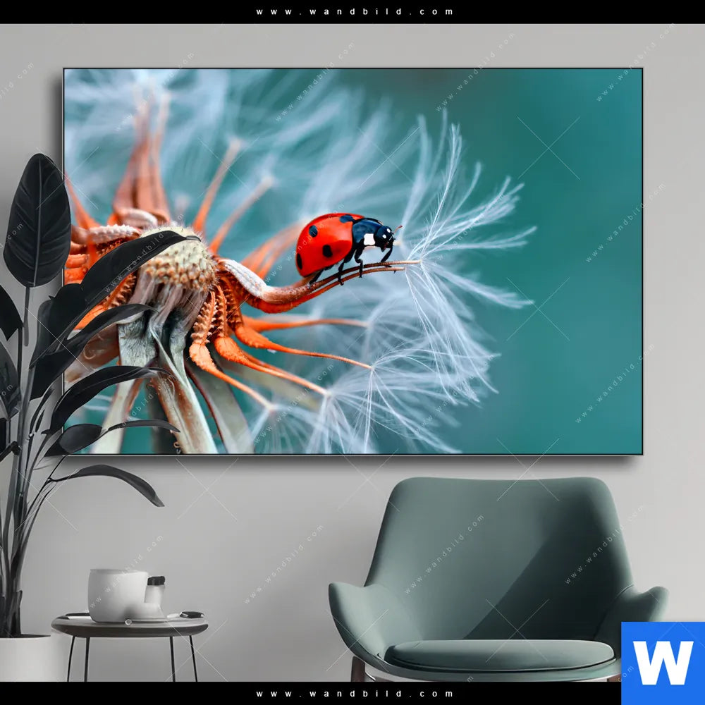 Wechselmotiv Textil | Sonnenkäfer auf Pusteblume | Querformat