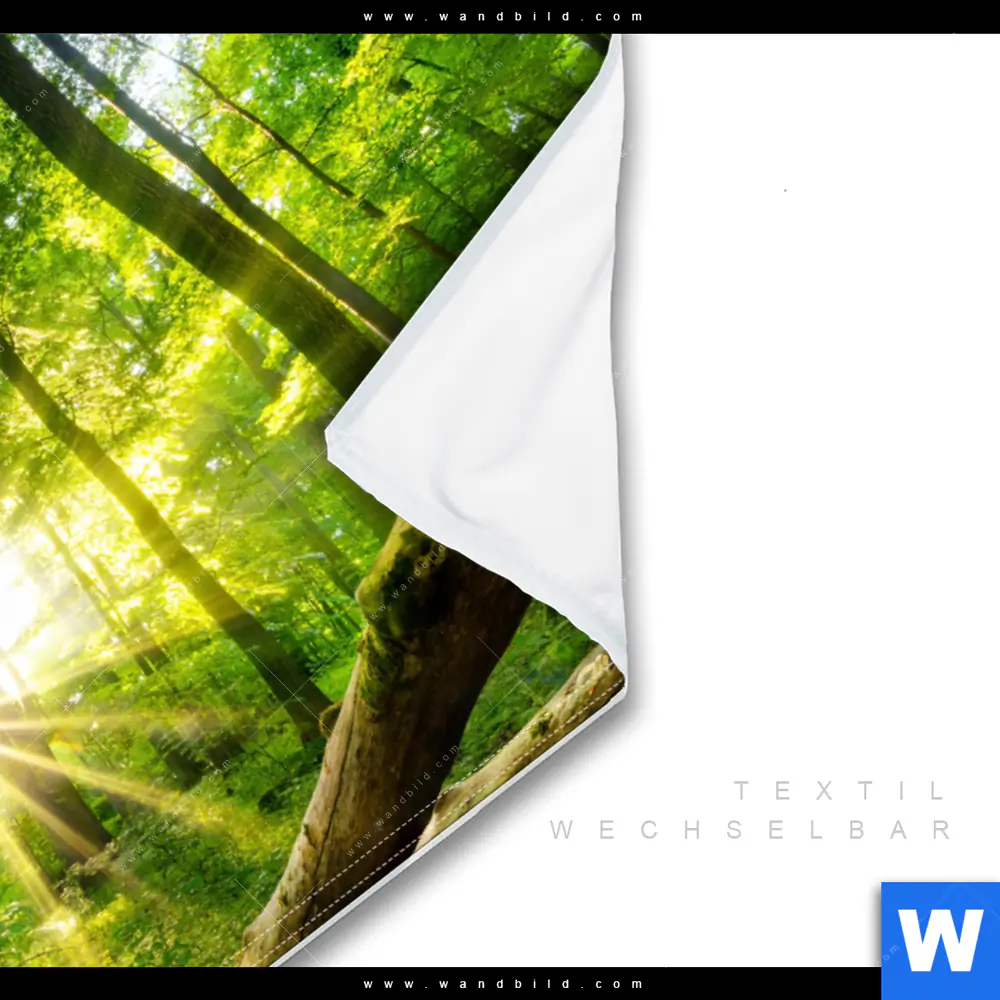 Wechselmotiv Textil | Sonnenstrahlen im dichten Wald | Querformat