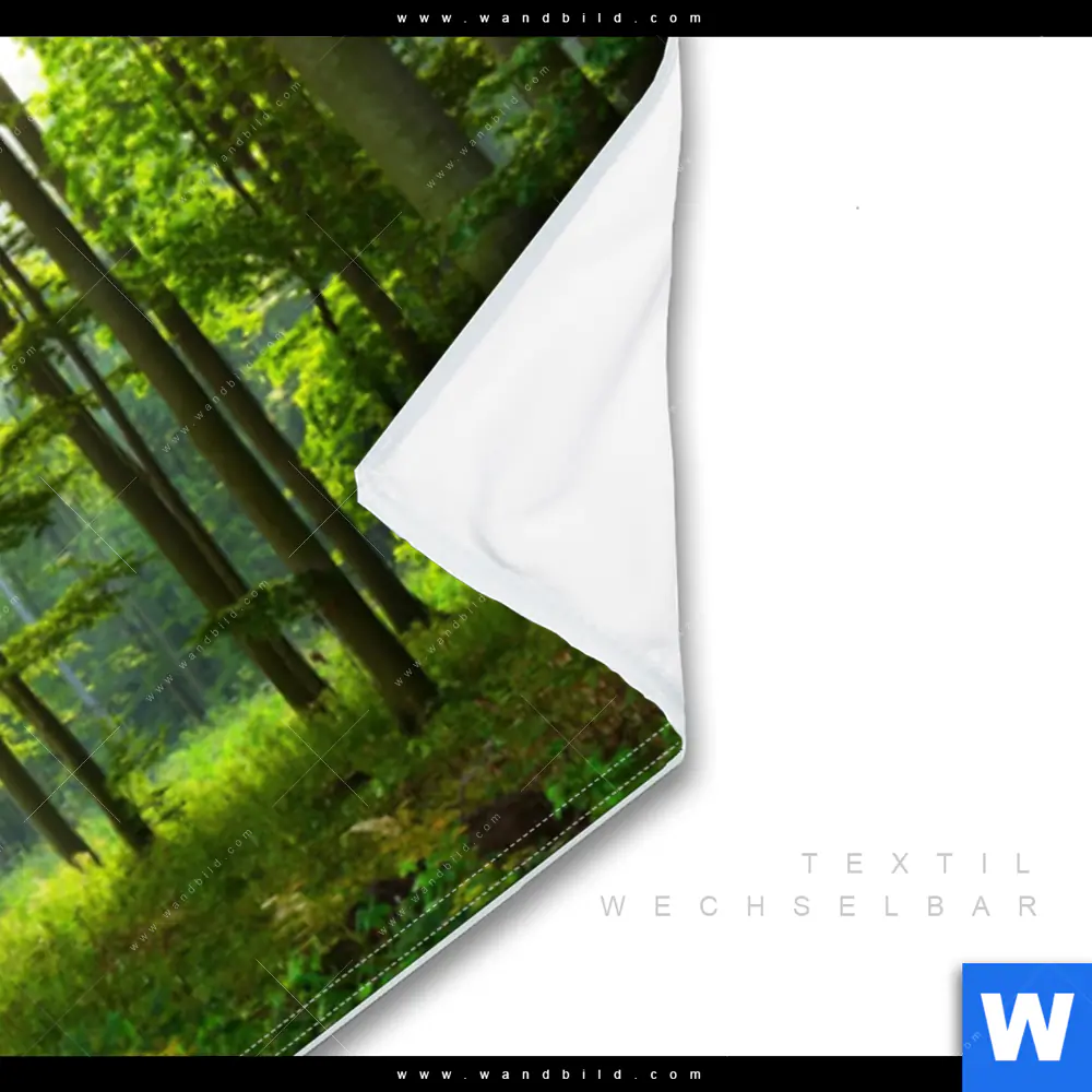 Wechselmotiv Textil | Sonniger Morgen im Wald | Panorama