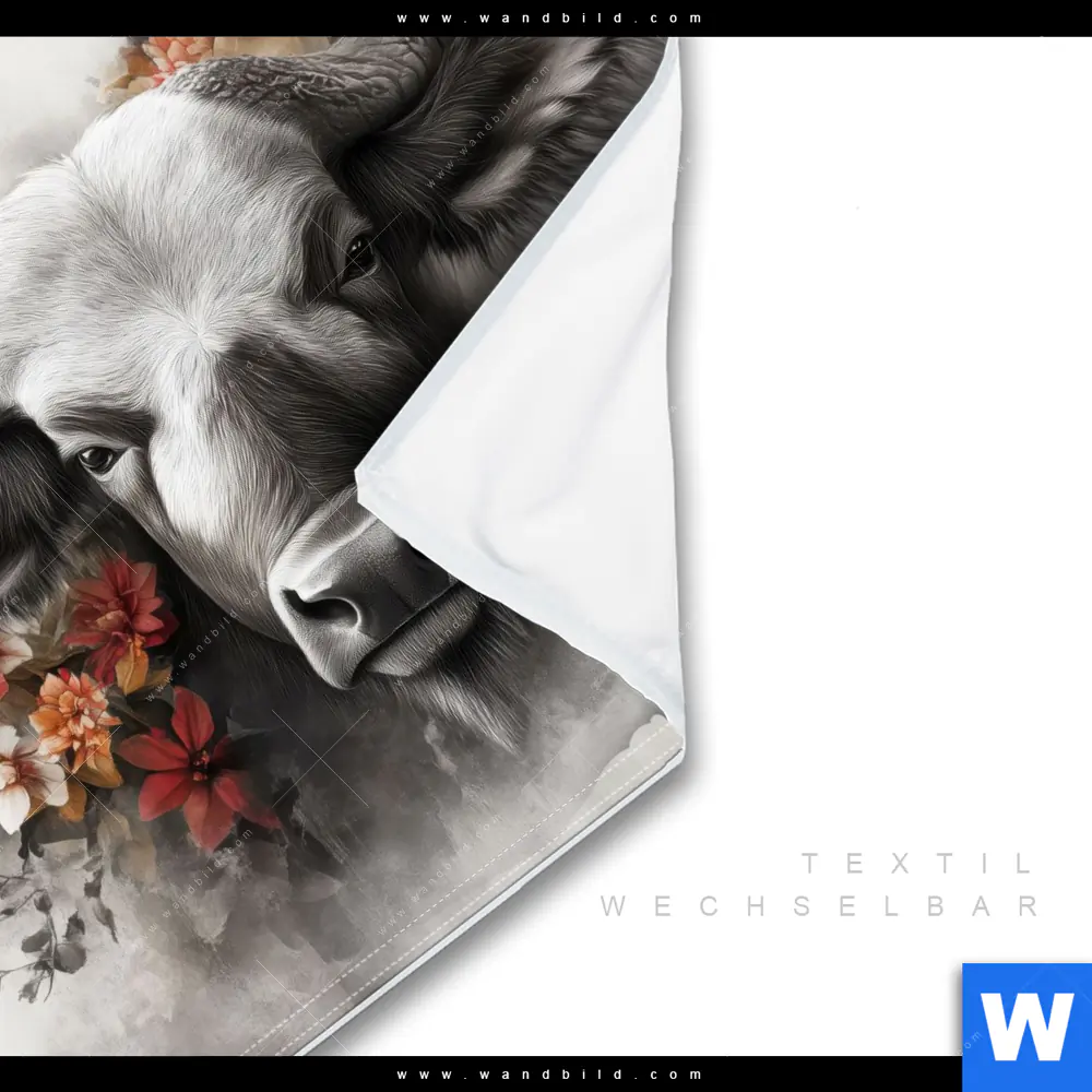 Wechselmotiv Textil | Starker Bulle mit Blumen | Quadrat