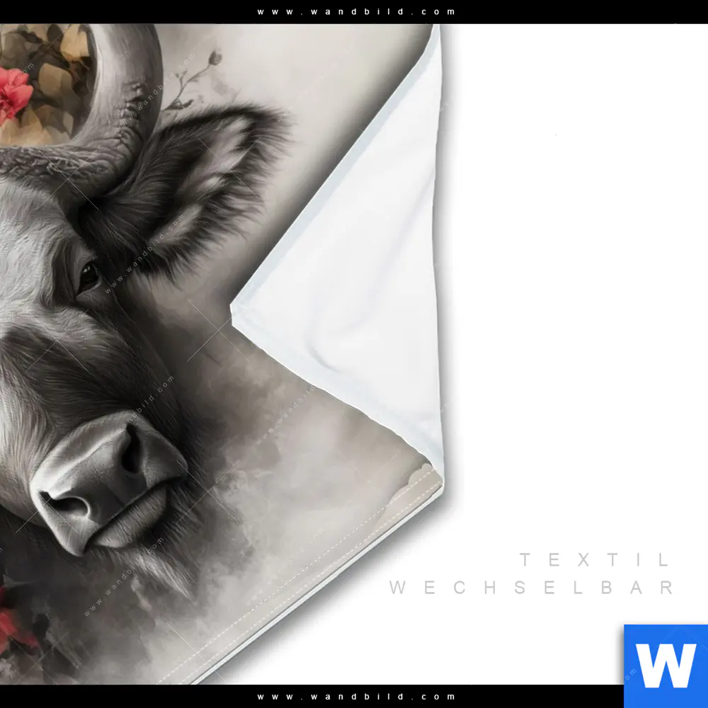 Wechselmotiv Textil | Starker Bulle mit Blumen | Querformat