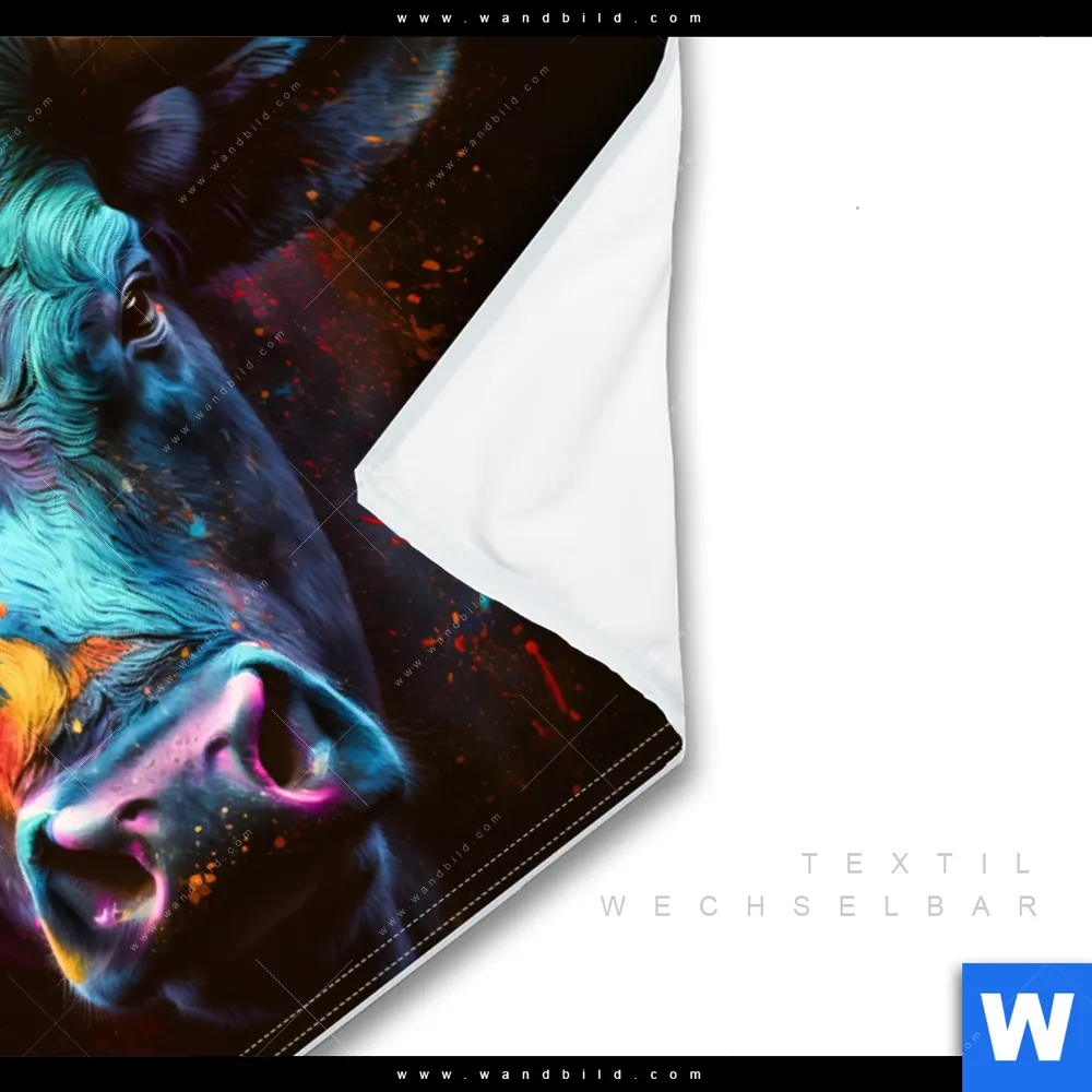 Wechselmotiv Textil | Stier mit bunten Farben | Querformat