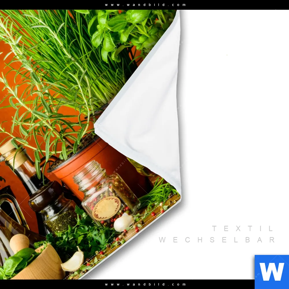 Wechselmotiv Textil | Stillleben mit mediterranen Kräutern | Quadrat