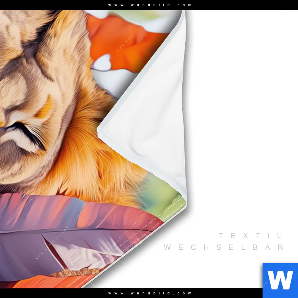 Wechselmotiv Textil | Träumender Löwe im Baum | Hochformat