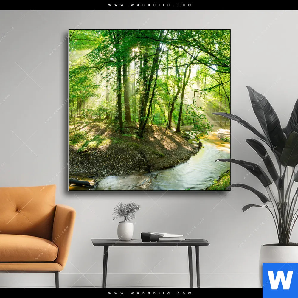 Wechselmotiv Textil | Wald mit Bach | Quadrat