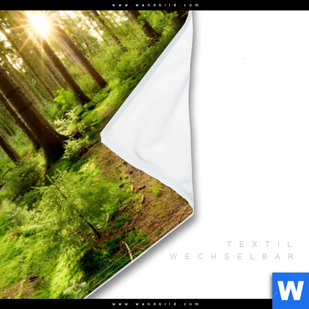 Wechselmotiv Textil | Wald mit Sonnenstrahlen No.2 | Querformat