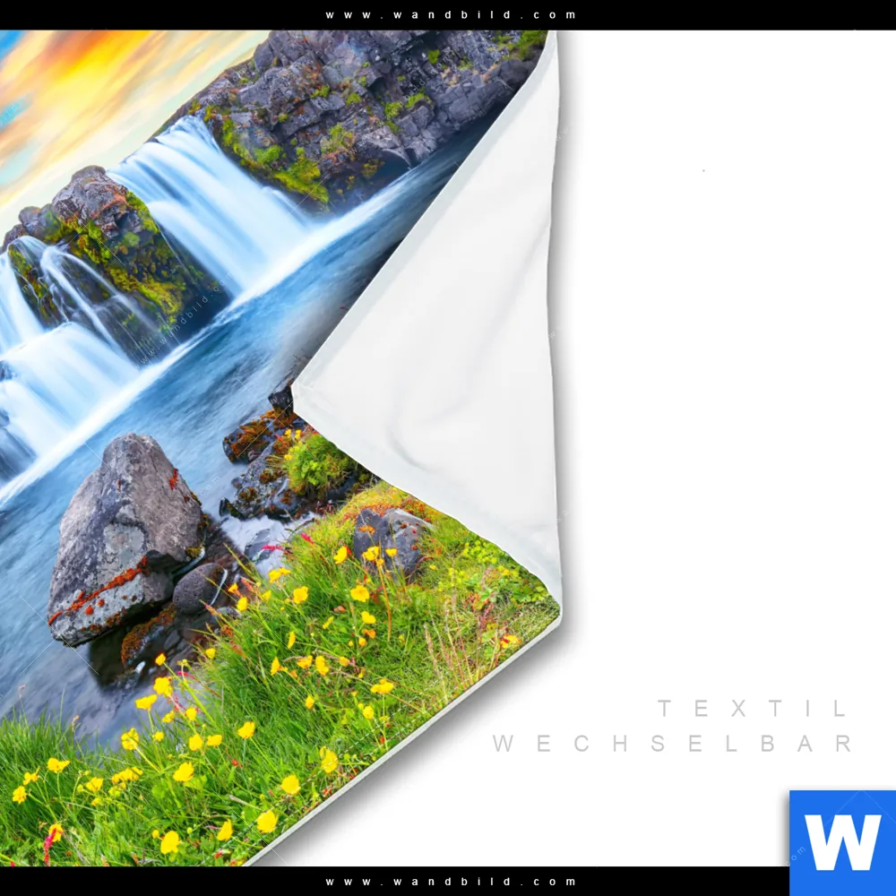 Wechselmotiv Textil | Wasserfall bei Sonnenuntergang | Quadrat