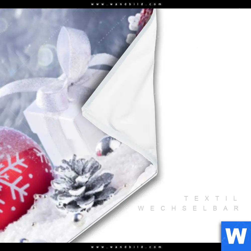 Wechselmotiv Textil | Weihnachtskugeln im Winterwunderland | Panorama