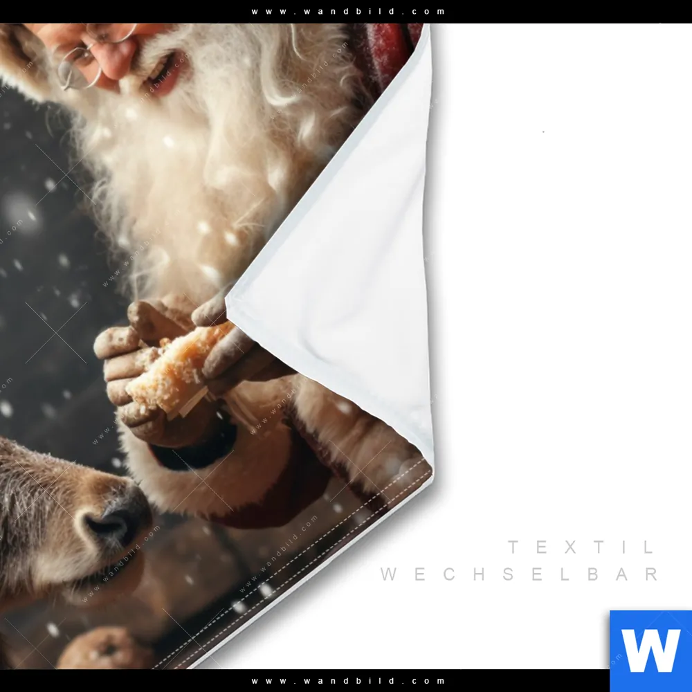 Wechselmotiv Textil | Weihnachtsmann füttert Rentier | Querformat