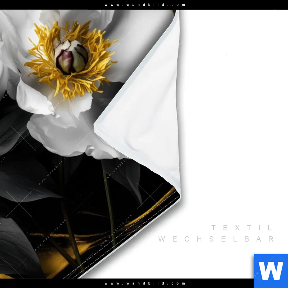 Wechselmotiv Textil | Weiße Blumen mit Gold | Querformat