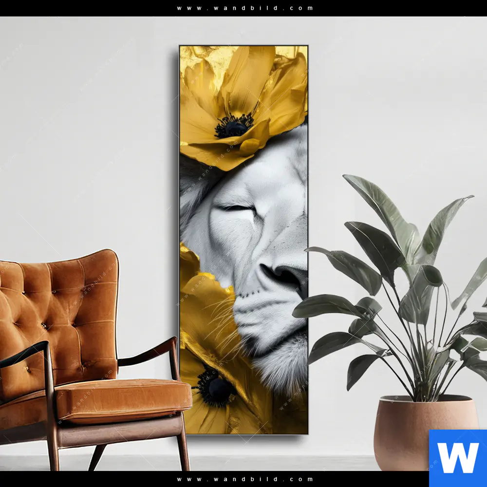Wechselmotiv | Weiße Löwin mit Goldblüten | Schmal