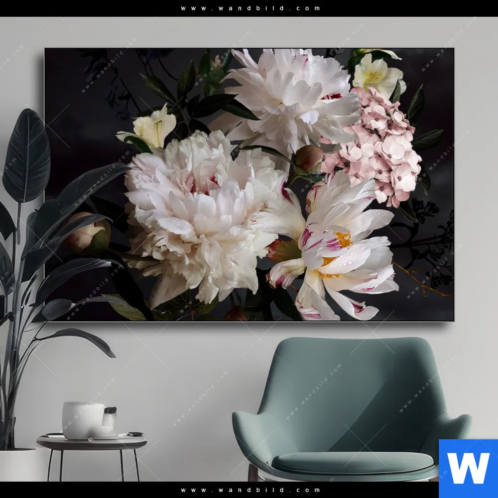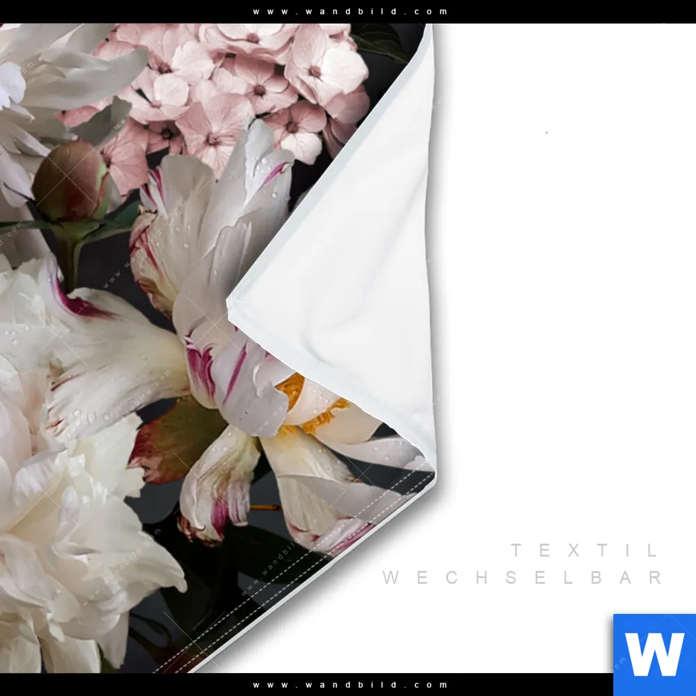 Wechselmotiv Textil | Weiße Pfingstrosen | Querformat